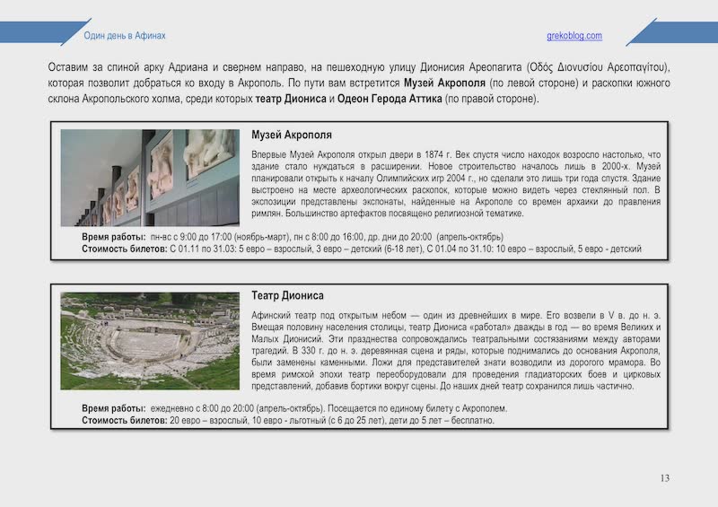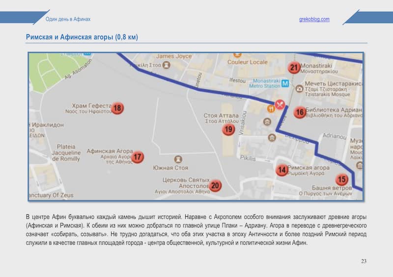 Посмотрите примеры нескольких страниц маршрута по Афинам