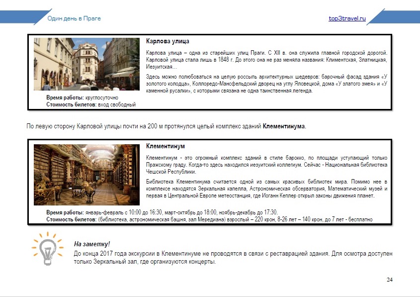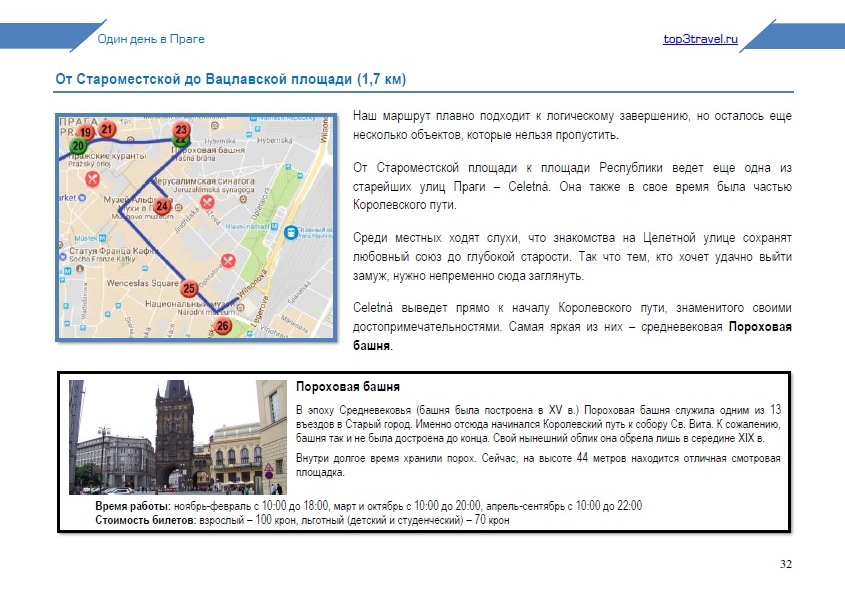 Посмотрите примеры нескольких страниц маршрута по Праге