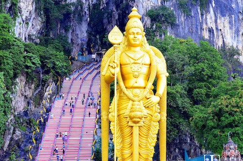 Перед лестницей в пещеру Вы увидите огромную статую божества Муругана, высотой более 40 метров, а затем, преодолев 272 ступени, посетите саму пещеру расположенный в ней Тамильский храм.
